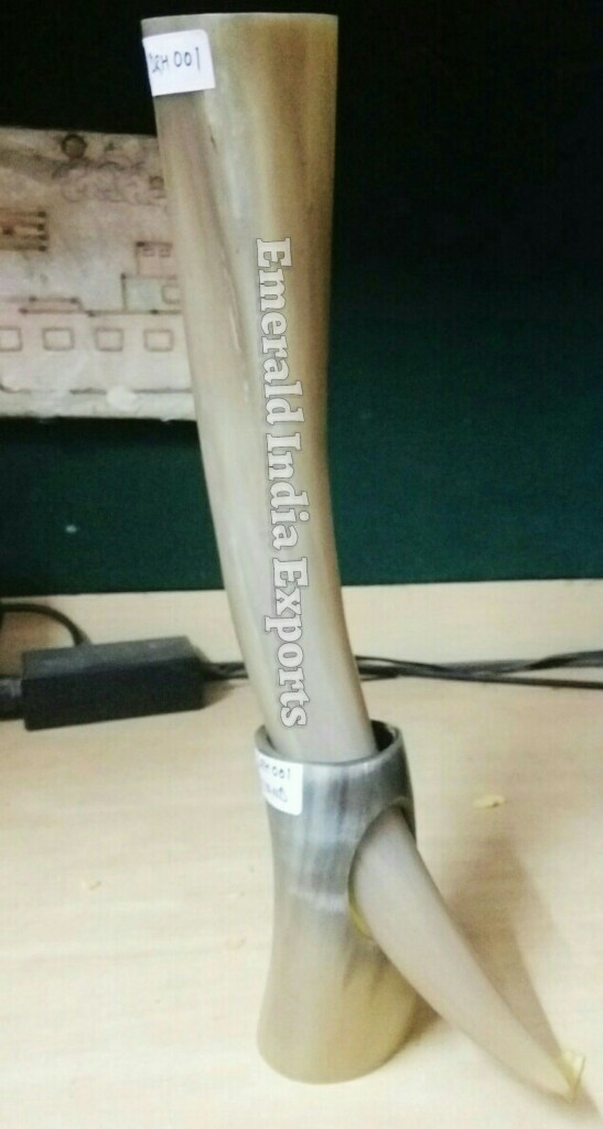 Drinking Horn is very light in weight and dyed with green bottom along with matching horn stand gives a unique look to the horn.The Size of the horn is 12″-15″ and stand is of 3”. though it is available in all sizes as per clients requirement .It is lacquer coated from inside and polished from outside.Shade will vary from horn to horn.